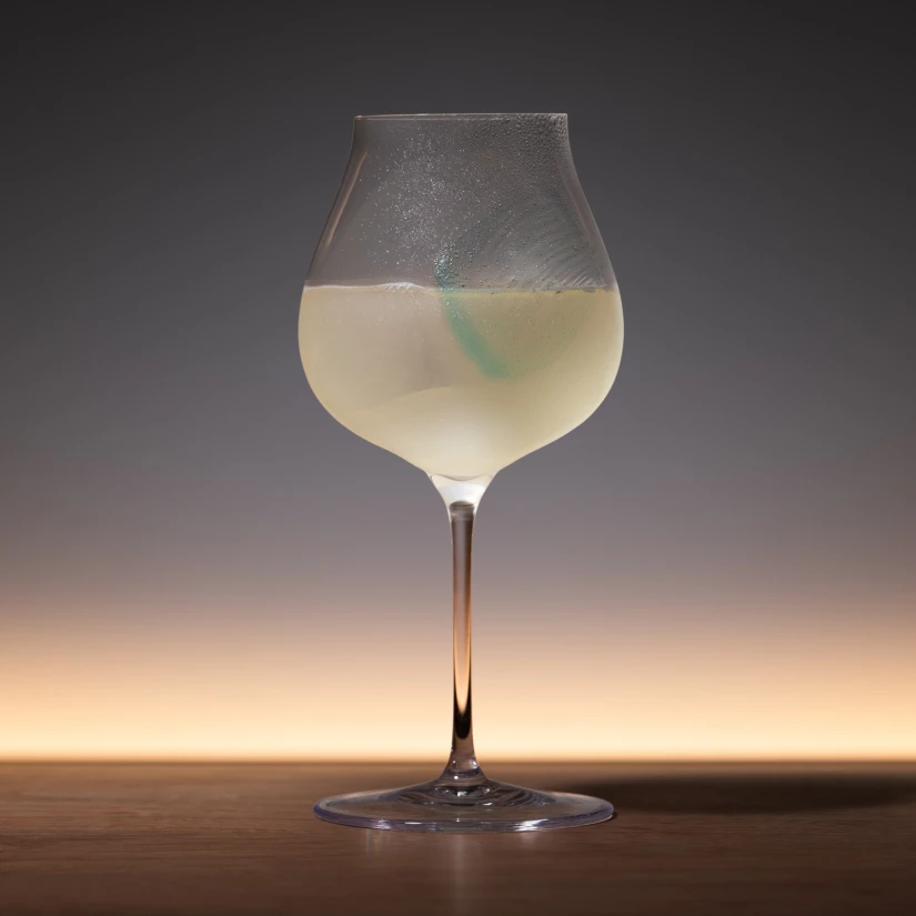 「調和」をテーマに、焼酎に不可欠な水の要素を加えた一杯。DAIYAME 40に感じたミネラルの味を軸に東シナ海の朝霧をイメージしました。