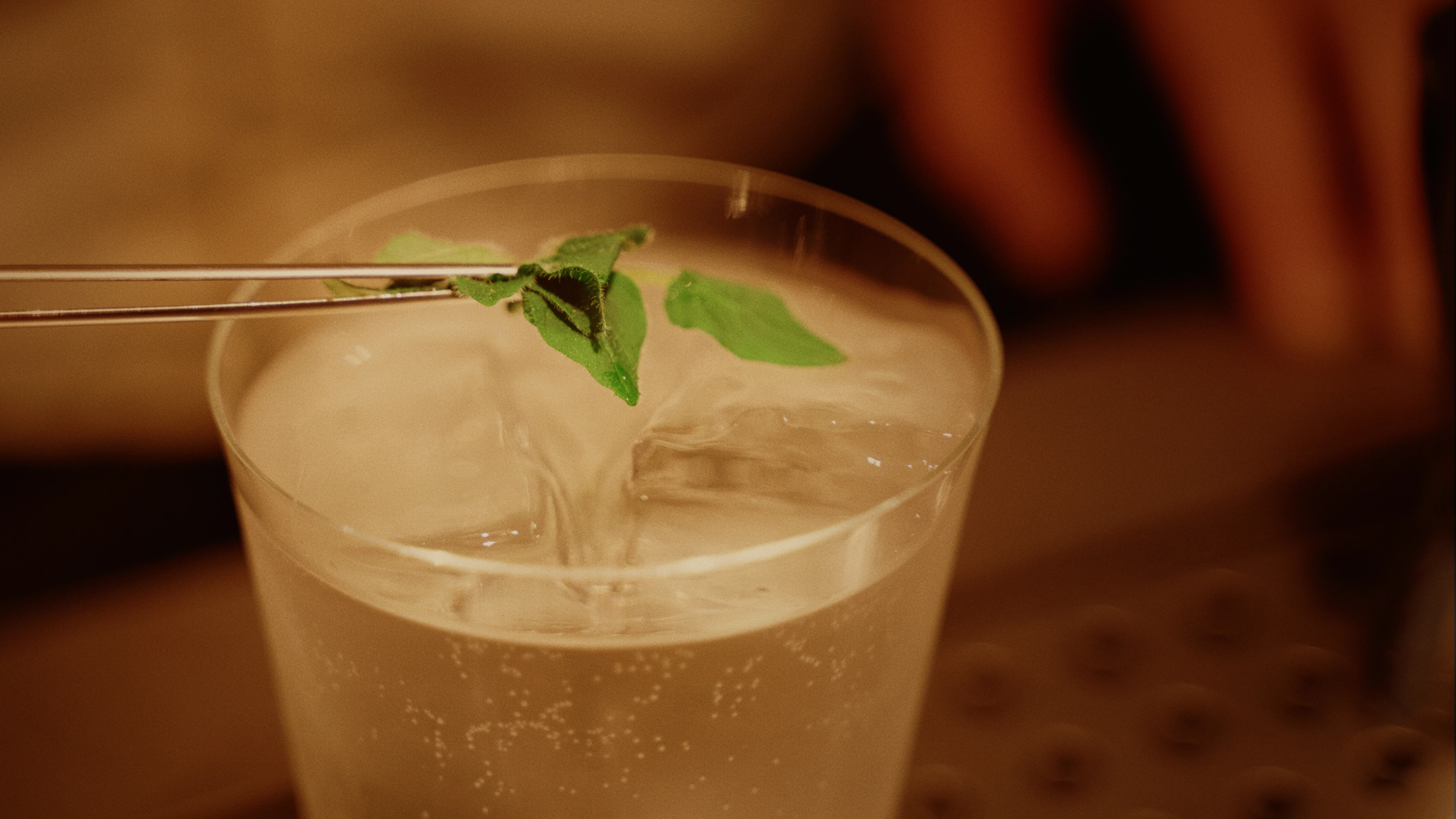 すべての材料を混ぜ合わせ、ミキシングカップを使用して氷と液体を交互に流し込み、混ぜ合わせる。液体に多くの空気を混入させて材料の香りを立たせ、冷やしつつ滑らかな口当たりに仕上げて完成。
