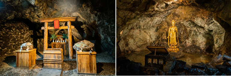 トロッコで坑洞内に向かった先にあるのは、金山の歴史そのもの。熟成貯蔵庫や2つのパワースポットなど、わかりやすい蔵の案内人の説明で没入感も高まります。期間中は、通常便の11時・14時のトロッコに加え、15時発の臨時便を追加。気温19度前後の涼しい坑洞内で、非日常体験をお楽しみください。